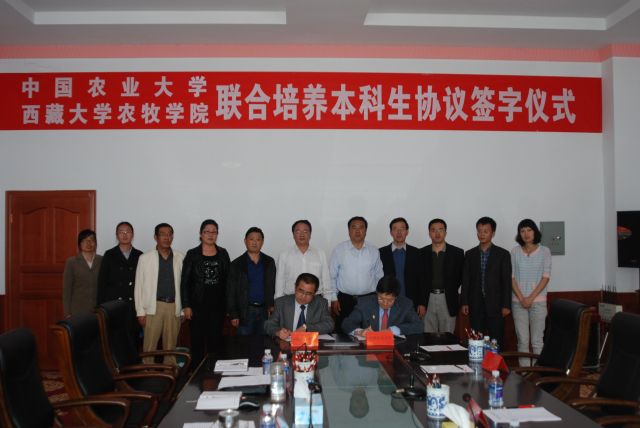 6月27日下午,中国农业大学与我院联合培养本科生协议签字仪式举行。中国农业大学副校长龚元石,教务处处长林万龙,发展规划处处长刘竹青,党政办公室副主任张银,动物医学院党委副书记、副院长(我院援藏干部)李鹏;我院党委副书记、院长次旦平措,党委委员、副院长赵垦田以及学院办公室、教务处、党委组织部、各相关二级学院的负责人等出席签字仪式。签字仪式由赵垦田主持。