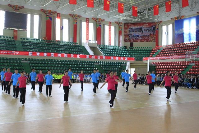 比赛仪式上,首先进行的奏唱《国歌》。随后,谢金川致辞。他首先向为本次活动付出辛勤劳动的老师们、评委们、全体工作人员以及积极支持、参与本次活动的广大师生员工表示衷心的感谢。他指出,此次比赛活动,是切实推进“阳光体育运动”,深入贯彻“每天锻炼1小时,健康工作50年,幸福生活一辈子”体育健康理念的一项重要举措,对于提高教职工健康意识,丰富教职工的业余文化体育生活,营造浓厚的校园文化氛围,具有积极的推动作用,并希望广大师生员工以本次广播体操比赛为契机,积极自觉参加体育锻炼,踊跃投身体育活动,强健体魄,为服务祖国和人民、为拥有幸福快乐的人生打下坚实基础。