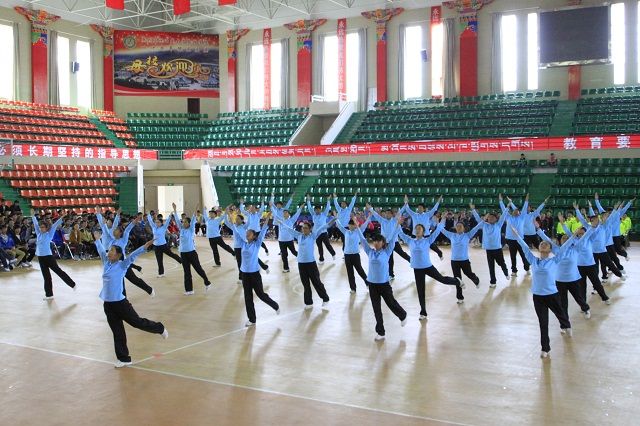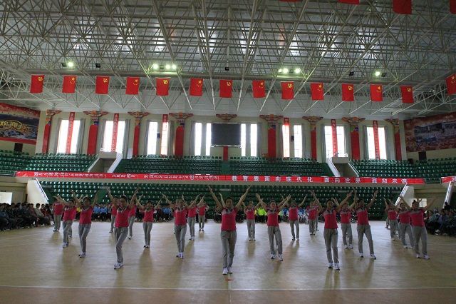 6月28日下午,我院在文体馆隆重举行“迎七一 筑梦想”教职工第九套广播体操比赛。学院党委书记、副院长纪建洲,党委副书记、院长次旦平措,党委委员、纪委书记、教育工会主席谢金川,党委委员、副院长琼日以及各单位党政领导出席比赛仪式。8个队共200余名教职工参赛,1000余师生员工观看比赛。