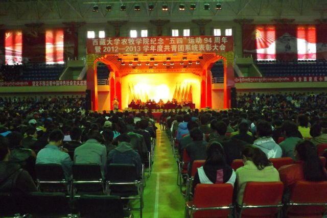 2013年5月5日晚19:30,我院在文体馆隆重召开纪念“五四”运动94周年暨2012—2013学年度共青团系统表彰大会。学院党政领导、共青团林芝地区委员会书记张梅、全院青年学生和青年教职工及学生管理部门党政负责人参加表彰大会。
