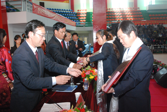 最后,桑珠书记要求全院师生员工要严格按照“坚持有利于民族平等团结进步、有利于各民族共同繁荣发展、有利于民族交流交往交融、有利于国家统一和社会稳定”的标准,以团结奋斗、争做典范为目标,将民族团结进步体现在具体行动中,相互学习、彼此尊重、紧密团结、密切合作,倍加珍惜历史经验,倍加珍惜民族团结,倍加珍惜安定团结的政治局面,进一步巩固和发展各民族平等、团结、互助、和谐的社会主义民族关系,共同担负起促进发展、维护稳定、加强团结的历史重任,担负起实现中华民族伟大复兴的历史重任,以优异成绩迎接党的十八大胜利召开,向学院建院40周年献礼。