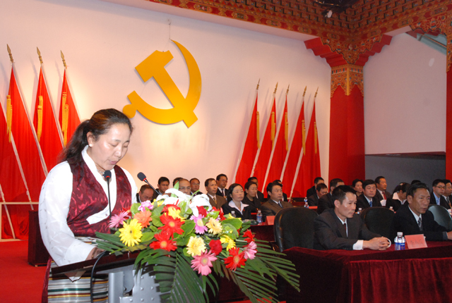 表彰大会在庄严的国歌声中拉开序幕。院党委委员、纪委书记谢金川同志首先宣读了《关于表彰学校2012年民族团结进步模范集体和模范个人的决定》。旺姆老师和王培同学分别代表获奖教师和获奖学生发言。