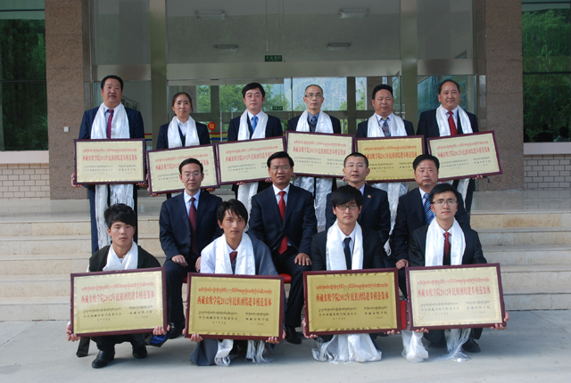 大会最后,学院领导分别为荣获2012年民族团结进步模范集体和模范个人颁奖,并与获奖集体和个人合影留念。