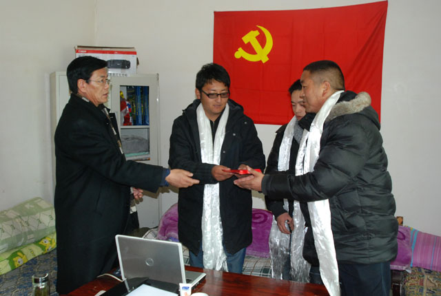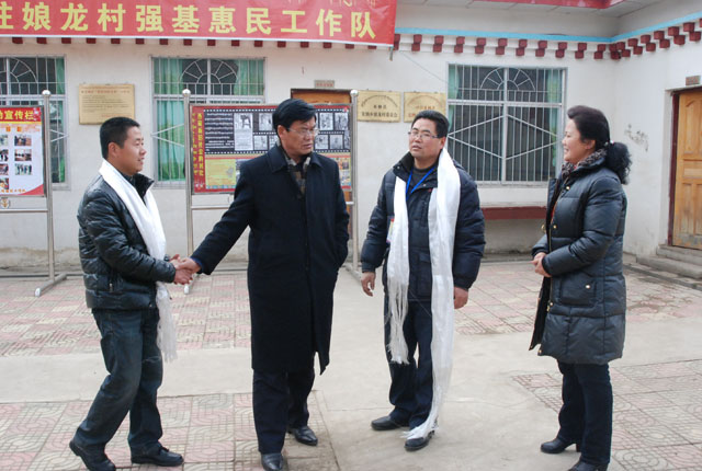 1月8日,我院党委书记、副院长桑珠,学院创先争优强基础惠民生活动领导小组成员、领导小组办公室主任毛永西一行4人先后赴米林县郎多村、羌渡岗村、娘龙村,检查指导我院创先争优强基础惠民生活动,并看望慰问驻村工作队。