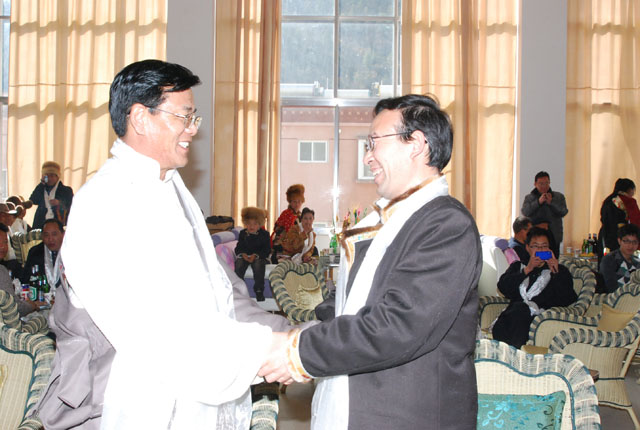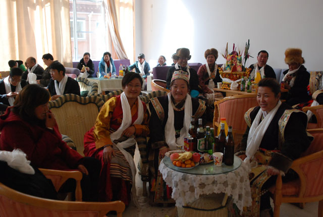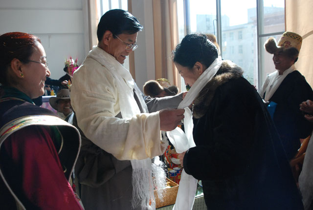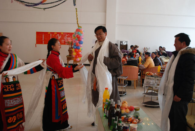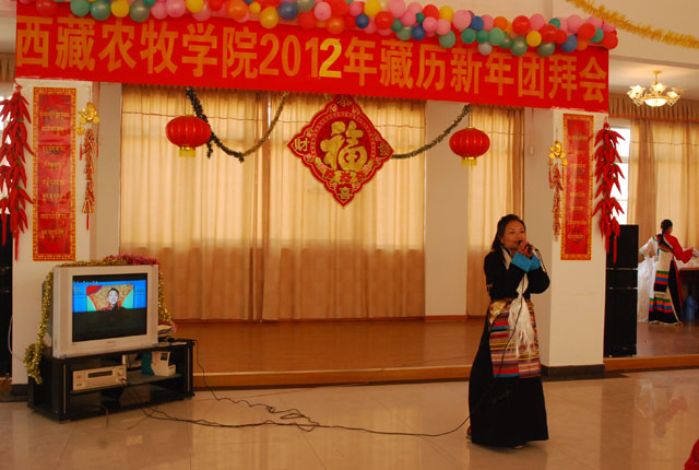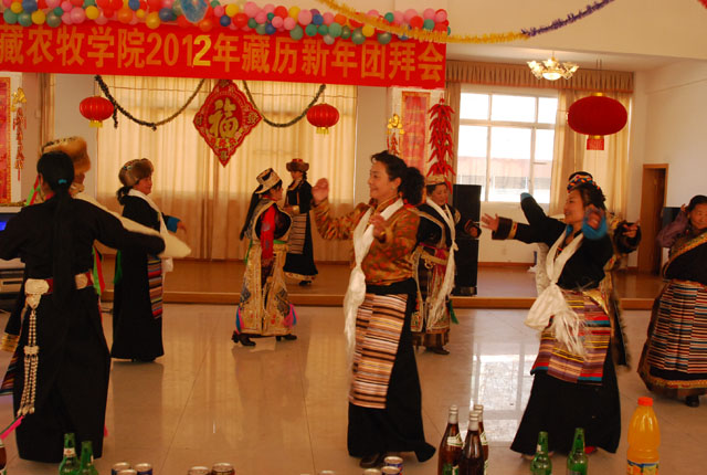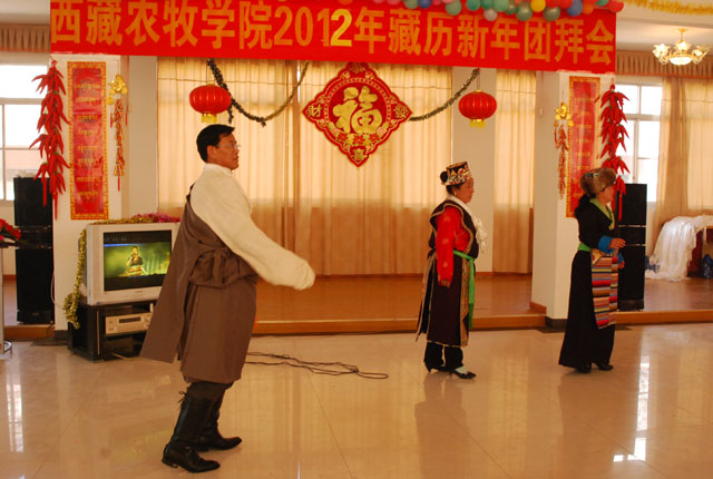 2月22日,我校藏历新年团拜会在教工活动中心隆重举行,留校值班的教职员工及家属,家住八一的离退休干部职工,喜着节日的盛装,载歌载舞欢聚一堂,共庆藏历水龙新年,学校领导桑珠、赵垦田、谢金川出席了团拜会。