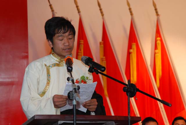 大会在雄壮的国歌声中开始。院党委委员、副院长赵垦田宣读了《关于表彰2010—2011学年共青团系统先进集体及先进个人的决定》和《关于表彰2010—2011学年校外获奖先进个人的决定》,院党委宣传部副部长、院团委书记赵德军宣读了《关于表彰2010—2011学年寒假社会实践调查活动优秀调查报告的决定》。米玛次仁同学、孟萌老师分别代表青年学生和青年教职工作了大会发言。