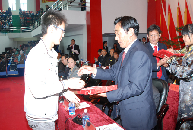 大会在庄严的国歌声中开幕,院党委委员、纪委书记公曲,院党委委员、副院长强巴多吉,院党委委员、教务处处长赵垦田,院党委宣传部副部长、团委书记赵德军分别宣读了《关于表彰2009—2010学年学生工作综合考评先进单位的通知》、《关于表彰2009—2010学年优秀辅导员和优秀班主任的通知》、《关于表彰2009—2010学年先进集体和先进个人的通知》和《关于表彰2010年暑期三下乡社会实践活动先进集体和先进个人的通知》。之后,在校生代表、新生代表及教师代表先后发言。