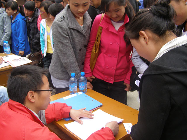 开班典礼结束后,毕业生与各用人单位招聘人员进行了热烈地交谈,招聘人员耐心回答了毕业生提出的问题,向毕业生详细介绍了单位的组织机构、规模及发展现状,热烈的招聘现场吸引了不少其它学院的毕业生前来参与。