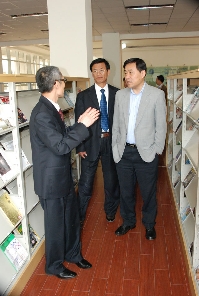 下午16时,姜沛民司长一行在院党委书记、副院长桑珠陪同下,参观了我院生物技术中心、图书馆、行政楼及正在建设中的我院自治区“十一五”重点项目(学生活动中心、综合教学大楼和实验大楼等)。在生物技术中心动物疾病检测中心实验室,姜沛民司长与正在做实验的学生进行了亲切交谈;在图书馆,姜沛民司长一行参观了阅览区、期刊区、藏书区等,赞扬图书馆管理先进、环境整洁、非常人性化。
