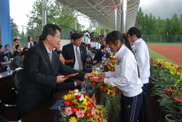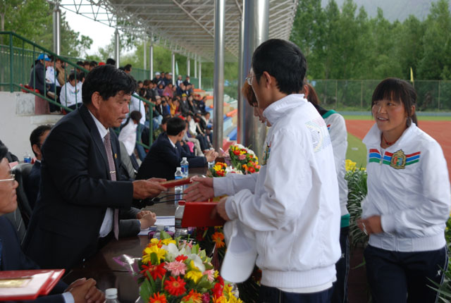 闭幕式上,院党委书记、副院长、运动会组委会主任桑珠等院领导分别为获奖的代表队和运动员颁奖。大会还表彰了我院在全区第二届大中专院校运动会上获奖的代表队和运动员。