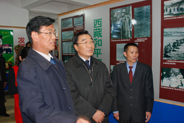 张庆黎书记在学院党委书记桑珠同志及党政领导班子其它成员陪同下参观了校史展室和爱国主义教育展室。参观中,张庆黎书记一边认真听取讲解员的介绍,一边仔细观看图片,并不时询问、了解相关情况,与大家进行亲切交谈,参观完展室后,张庆黎书记挥笔题词“教书育才,服务三农”。