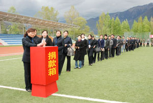 地震无情,人间有爱,青海省玉树地震灾区的情况时刻牵动着西藏农牧学院全体师生员工的心。为了帮助灾区人民早日战胜灾害,表达全校师生员工的爱心,4月21日下午,学校在体育场隆重举行了情系玉树地震灾区献爱心捐款仪式,学校领导以及全校师生员工4200余人参加了捐款活动。