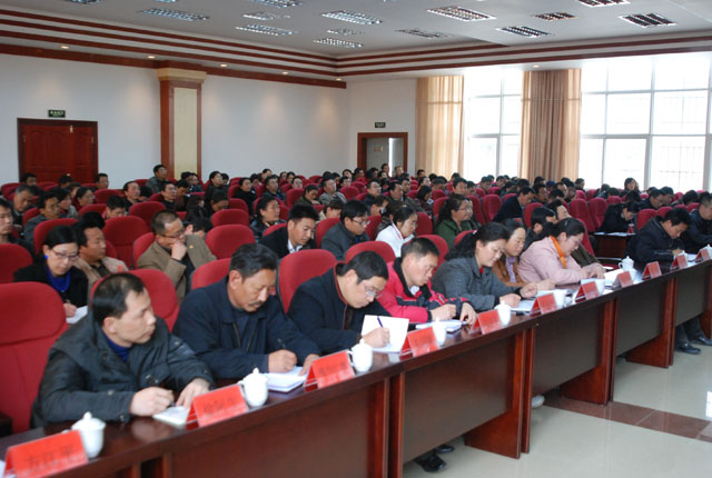 2010年3月26日下午,我院在培训楼会议室隆重召开效能建设年活动动员大会,院党委书记、副院长、院党委效能建设年活动领导小组组长桑珠同志出席会议并作重要讲话。大会由院党委委员、纪委书记、院党委效能建设年活动领导小组副组长公曲同志主持,院党委委员、副院长、院党委效能建设年活动领导小组副组长周秀英同志,院党委委员、副院长、院党委效能建设年活动领导小组副组长强巴多吉同志,院党委委员、教务处处长、院党委效能建设年活动领导小组副组长赵垦田同志及全院正科级以上领导干部参加大会。