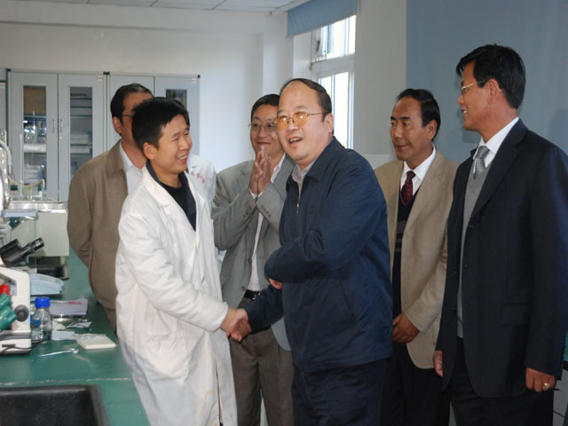 在校大门口,张裔炯副书记与正在值班的门卫一一握手,向他们表示亲切慰问。随后,张裔炯同志在桑珠书记陪同下,参观考察了校园环境及电力系统综合自动化实验室、动物遗传育种与繁殖等自治区级重点实验室,并与实验室工作人员及正在做实验的研究生进行亲切交谈,勉励他们勤奋学习,努力钻研,学有所成,将来成为西藏农牧业领域的袁隆平,为西藏农牧业经济的发展做贡献。