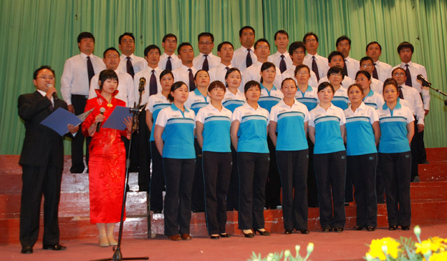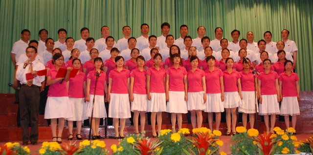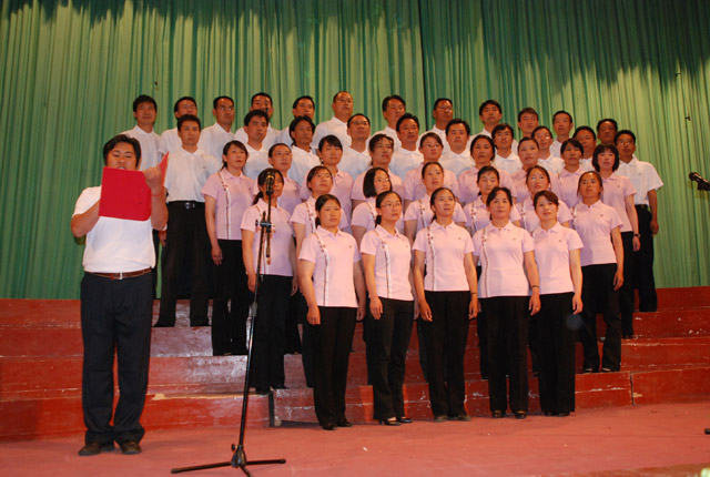 在各班级、各二级学院、各单位开展活动的基础上,6月25、26日我院组织开展了“祖国万岁”---歌唱伟大祖国 喜迎六十华诞大型歌咏比赛,学校千余名师生同台参与了比赛。来自4个二级学院的学生代表队和教职工代表队共12支合唱队饱含激情,唱响了歌颂祖国,缅怀岁月的一支支颂歌。《在希望的田野上》、《没有共产党就没有新中国》、《中国、中国鲜红的太阳永不落》等或优美、或雄壮的歌声回响在校园。随着比赛的不断推进,精彩一浪高过一浪,台下的掌声和台上雄壮的歌声相呼应,使现场的气氛澎湃激昂。