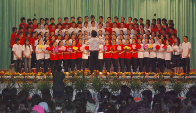 通过大型歌咏演唱活动,充分展现广大师生热爱祖国、朝气蓬勃、昂扬向上的精神风貌,不断激发了青年大学生的爱国热情,营造了积极向上、健康文明的校园文化氛围,进一步在校园内唱响了共产党好、社会主义好、改革开放好、伟大祖国好、各族人民好的时代主旋律,为建党88周年、建国60周年献上了一份厚礼。