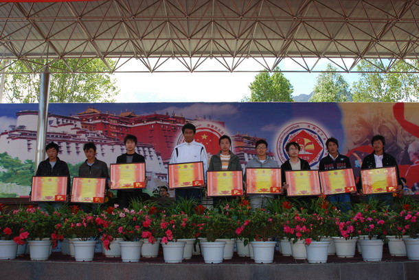 周秀英同志最后指出,我们所处的时代是一个充满活力、大有可为的时代,我们伟大的中华民族正朝着全面振兴的灿烂前景奋发前进,我们伟大的新中国即将迎来60华诞,正奔赴日益繁荣昌盛的美好前景,我们美丽的西藏正大踏步前进在社会主义新西藏建设的伟大征途上,我们的学校正处于历史上发展最好、最快的新时期。伟大的事业需要一代代人接力,美好的未来需要一代代人奋斗。我们要以执着的信念、优良的品德、丰富的知识、过硬的本领勇担历史重任,把火红的青春奉献给全面建设小康社会、发展中国特色社会主义的壮丽事业,不负重托、不辱使命,以优异的成绩迎接中华人民共和国成立60周年!