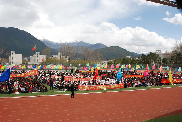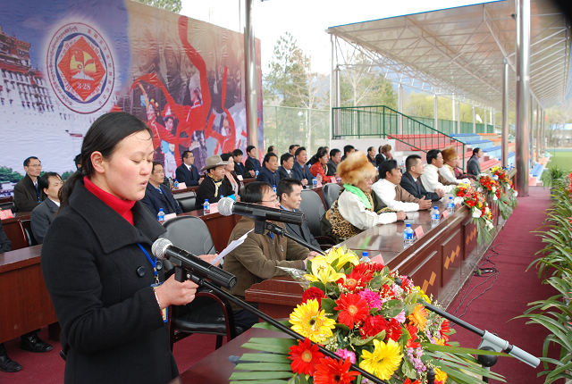 3月27日,校体育场花团锦簇,彩旗飘扬,横幅高挂,洋溢着一派热烈喜庆的气氛。下午14时30分,全校师生员工身着节日盛装欢聚在此,参加纪念西藏民主改革50周年暨“西藏百万农奴解放日”庆祝大会。学校领导桑珠、公曲、郑维列、周秀英、强巴多吉出席大会。会议由校党委委员、纪委书记公曲主持。