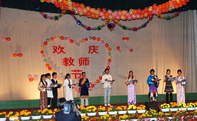 为庆祝第24个教师节,9月8日晚,由院宣传部、团委举办的欢庆教师节专场文艺演出在大礼堂隆重举行,院党委书记、副院长桑珠,院党委委员、纪委书记公曲出席现场,全院教职员工和近千名学生观看了晚会。