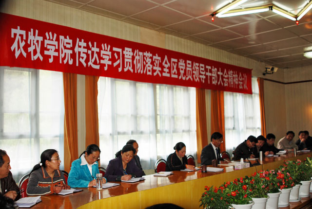 6月3日下午,西藏农牧学院党委召开党员干部传达学习全区党员领导干部大会精神会议,校级领导、县处级党员干部参加会议。院党委书记、副院长桑珠同志全文传达了区党委书记张庆黎同志在全区党员领导干部大会上的重要讲话。