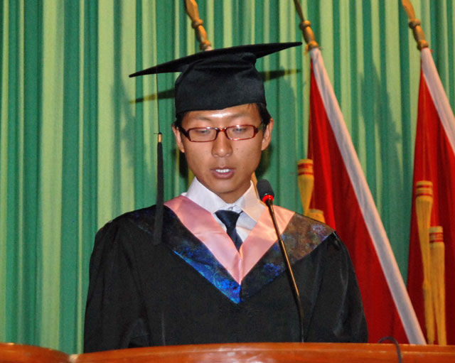 院党委书记、副院长桑珠作了热情洋溢的讲话,他代表学院党委行政向圆满完成学业的2008届毕业生表示热烈的祝贺,向辛勤工作的教师员工致以诚挚的问候,并对毕业生提出了几点要求:一要深入学习中国特色社会主义理论体系,努力用马克思主义中国化最新成果武装头脑,把握正确的人生航向;二要坚定政治立场,全力以赴做好反对分裂、维护祖国统一、维护校园和社会稳定工作;三要立志终身学习,实践完善自我,不断增强报效祖国、服务人民的本领;四要爱岗敬业,踏实工作,以积极的态度对待新的人生征程;五要锤炼品格,诚实守信、常怀感恩之心,努力回报祖国、回报母校。