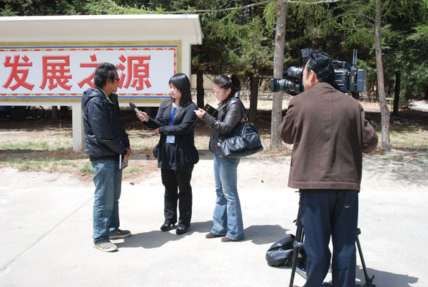 图为宣讲团成员,通过多媒体形式进行宣讲。