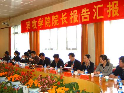 19日上午11点,在预评估专家听课后,学院领导向预评估专家汇报学院情况。