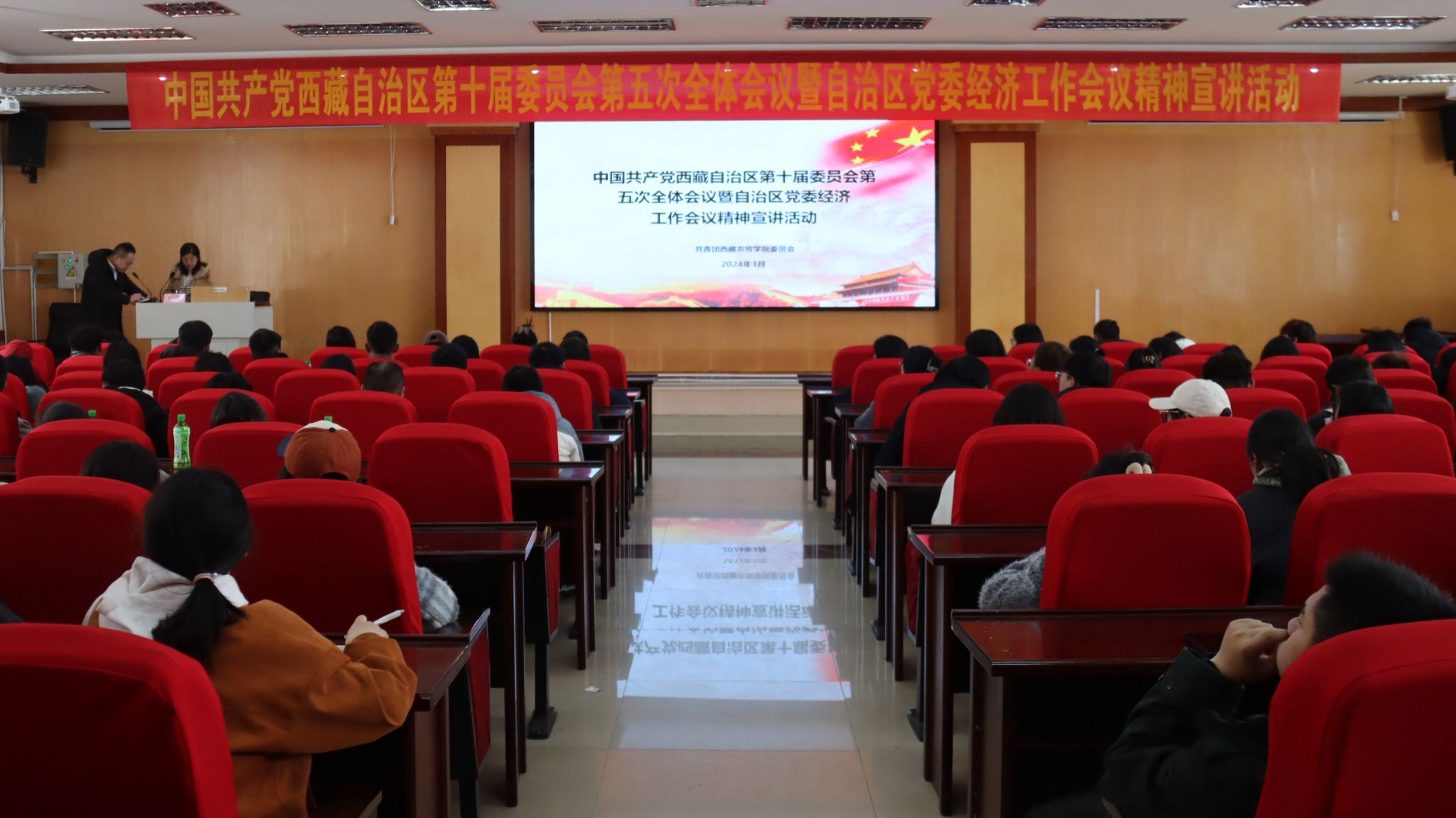 2024年3月14日,中国共产党西藏自治区第十届委员会第五次全体会议暨自治区党委经济工作会议精神宣讲会在我校研究生苑一号报告厅举行,自治区宣讲团成员、西藏大学马院教授曾燕做宣讲,校团委全体干部、各二级学院(部、所)团学干部、学生代表205人参会。