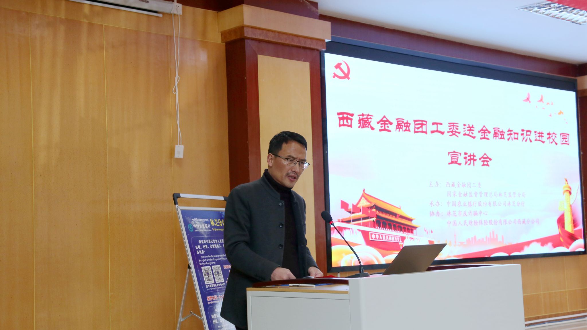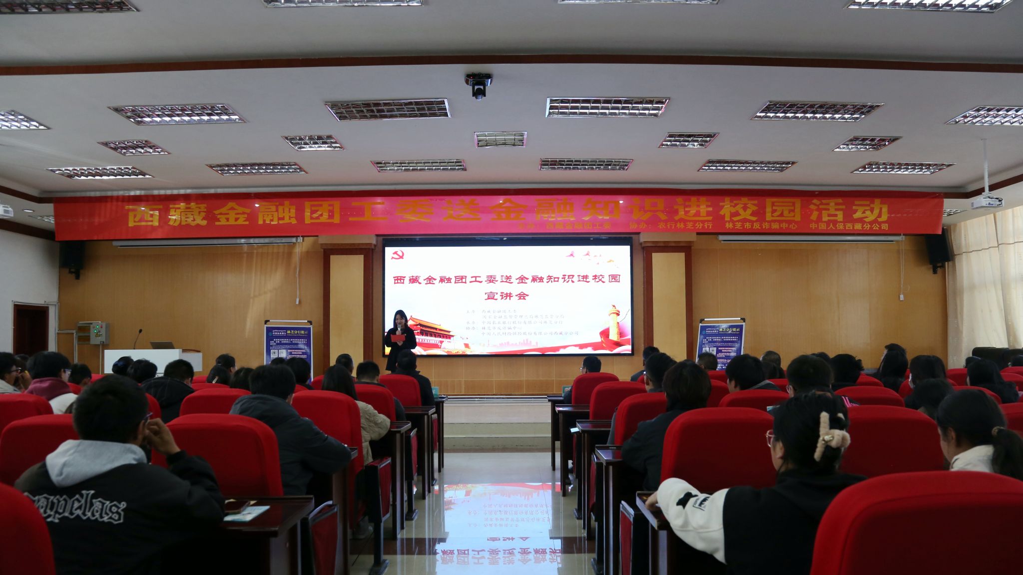 2024年4月13日,共青团西藏农牧学院委员会联合西藏金融团工委在研究生苑一号报告厅举办了“金融知识进校园 携手护航伴成长”主题宣传讲座。国家金融监督管理总局林芝监管分局党委书记、局长付跃东,农行林芝分行党委委员、副行长拉巴次仁应邀出席,我校党委委员、宣传部部长达娃次仁,安全保卫处处长王海山、学生工作处副处长杨建军、校团委副书记普旺堆与会参加,各二级学院(部、所)青年教师、团支部书记、学生干部、学生代表215人参会。