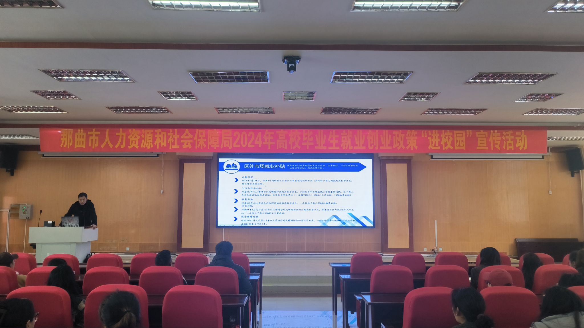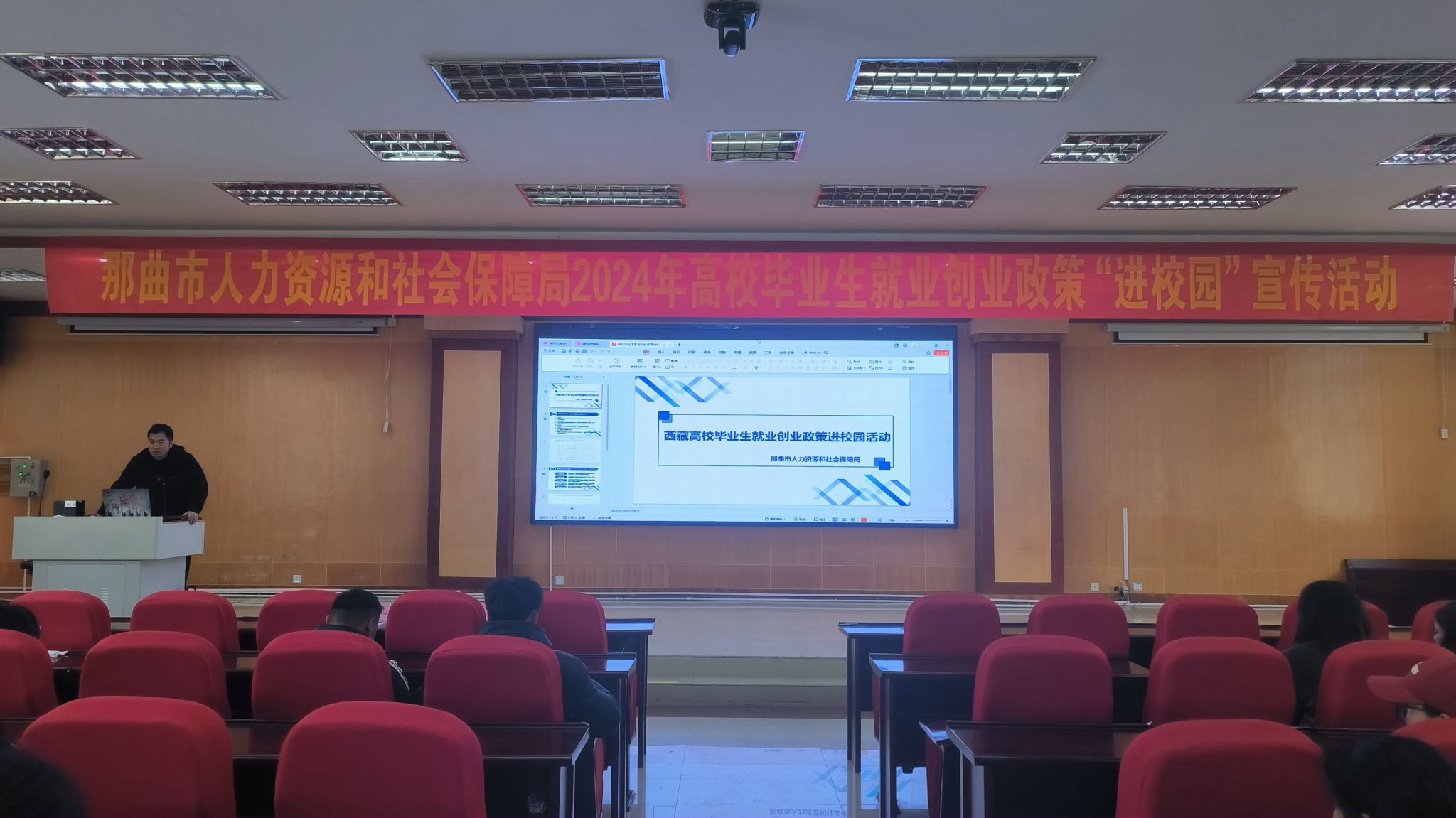 为深入贯彻落实党中央、区党委、市委关于促进高校毕业生就业创业系列决策部署,进一步扩大就业创业政策宣传覆盖面,教育引导应届高校毕业生树立正确的就业观,提高政策知晓度,营造全社会关心支持高校毕业生就业创业的良好社会氛围,4月18日,由那曲市人力资源和社会保障局主办,我校承办的“2024年那曲市高校毕业生就业创业宣传‘进校园’活动”在我校研究生苑学术报告厅举办。那曲市人社局副局长吴连庆一行4人对我校150余名那曲籍应届高校毕业生进行政策宣讲。