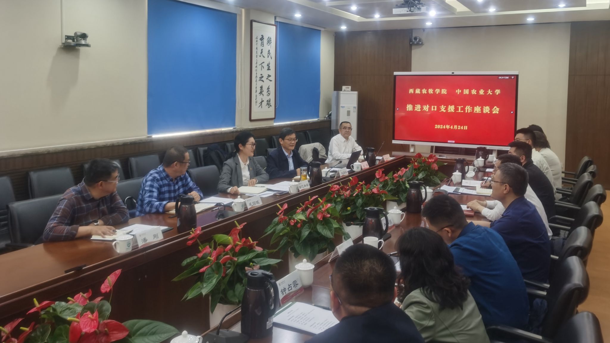 与中国农业大学座谈时,强巴央宗介绍了学校发展情况,希望中国农业大学与西藏农牧学院在铸牢中华民族共同体意识、服务融入国家重大项目等方面共同作出更好成绩。田见晖表示,中国农业大学党委、行政高度重视援藏工作,下一步将按照教育部对口支援要求,扎实推进对口支援工作,高站位谋划西藏农业农村发展需求,进一步加强科技创新合作;探讨人才培养量身定制模式,为青年人才培养创造新平台。