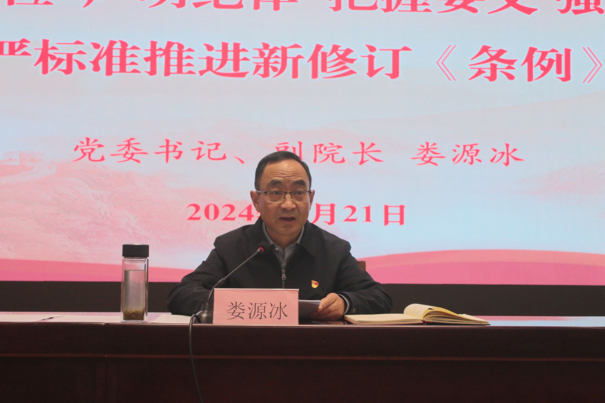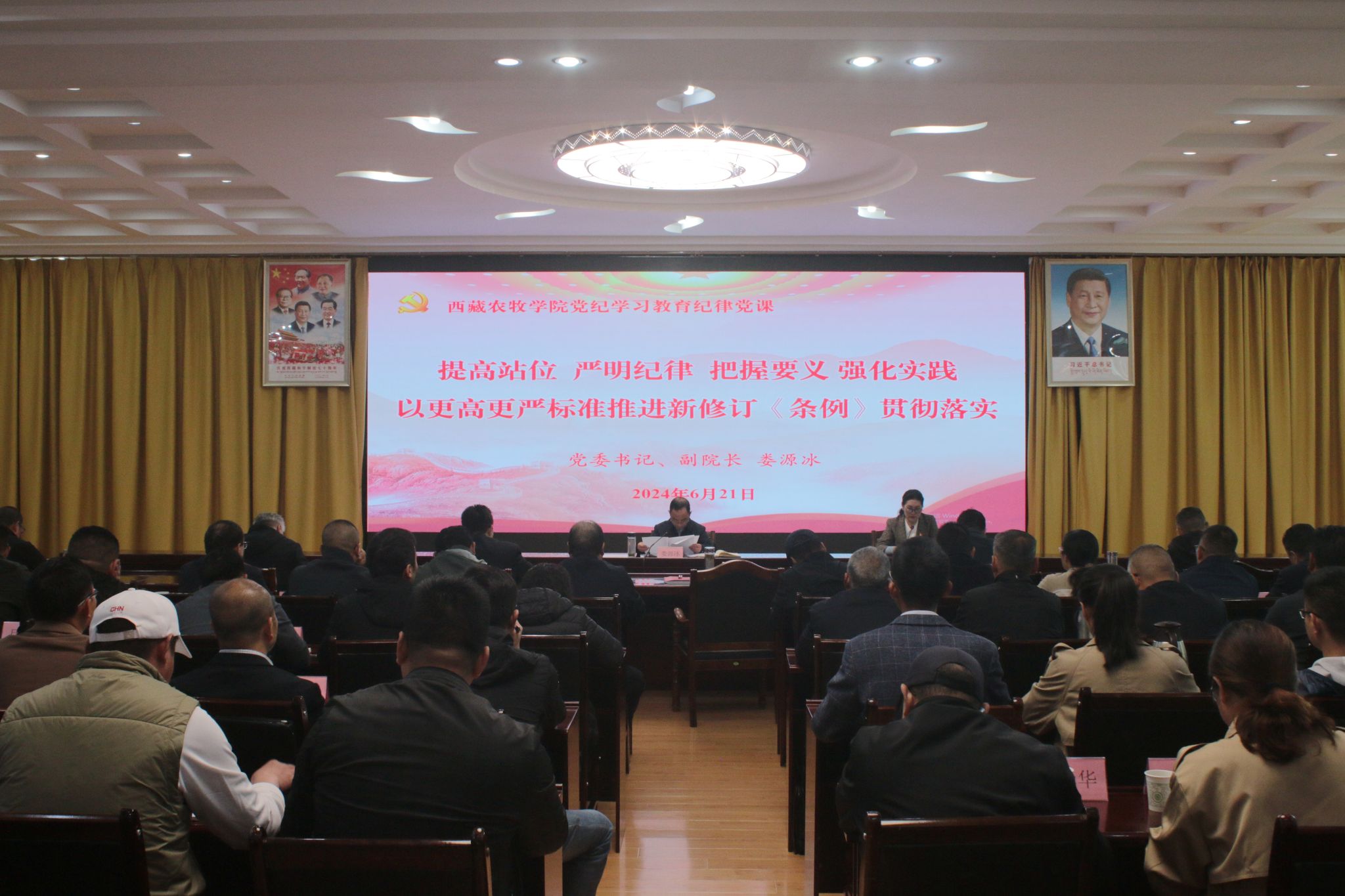 为深入贯彻落实党中央、区党委关于党纪学习教育的部署要求,6月21日,西藏农牧学院党委书记、副校长娄源冰以“提高站位、严明纪律、把握要义、强化执行,以更高更严标准推进新修订《中国共产党纪律处分条例》贯彻落实”为题,为学校党员干部讲纪律党课。会议由党委副书记、校长强巴央宗主持。