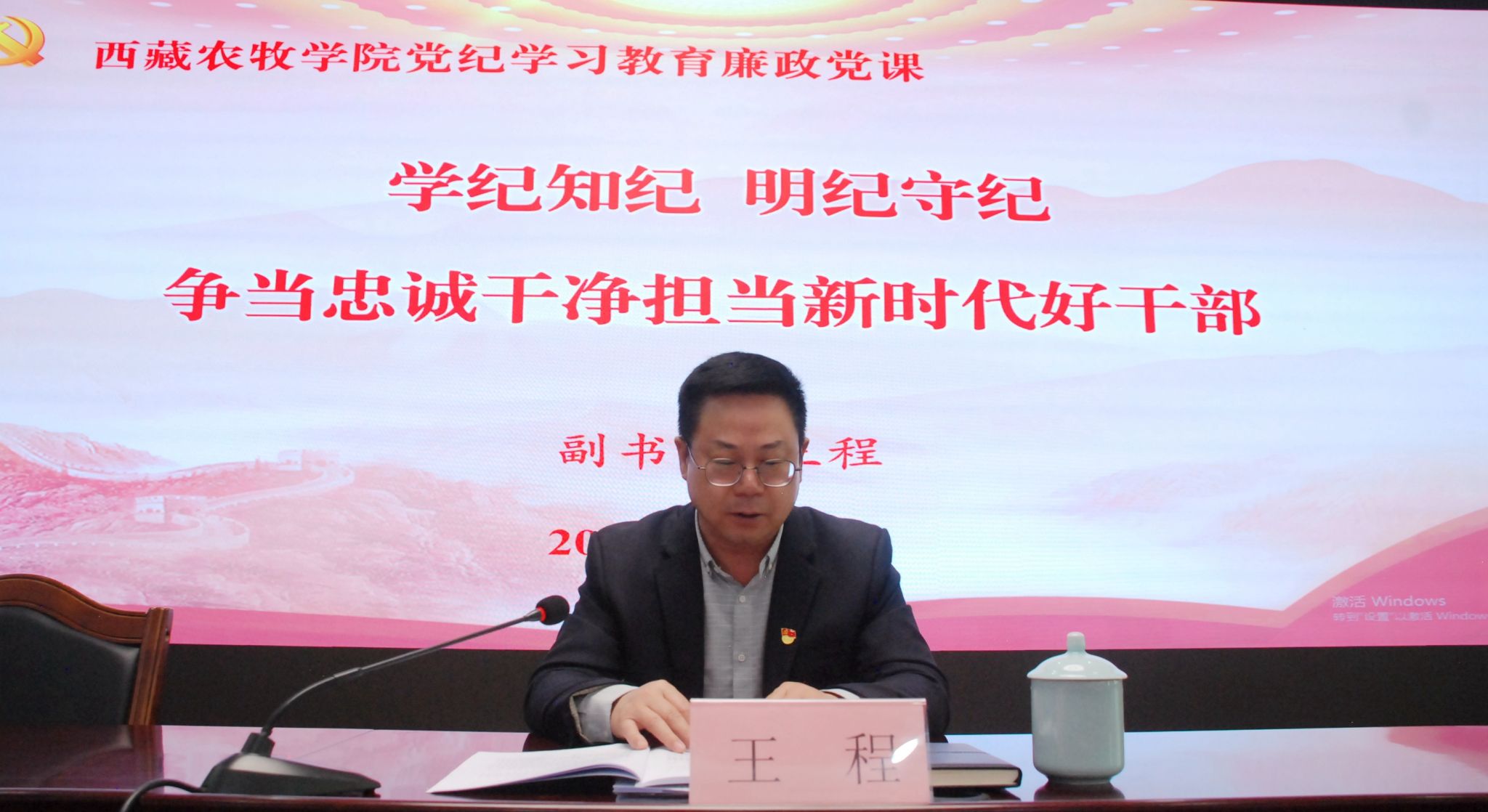 为高站位高质量开展好党纪学习教育,教育引导广大党员干部严明纪律规矩,强化政治担当,筑牢思想防线,6月25日上午,西藏农牧学院党委副书记王程以《学纪知纪 明纪守纪 争当忠诚干净担当新时代好干部》为题,为分管和联系单位全体党员讲党纪学习教育廉政党课。