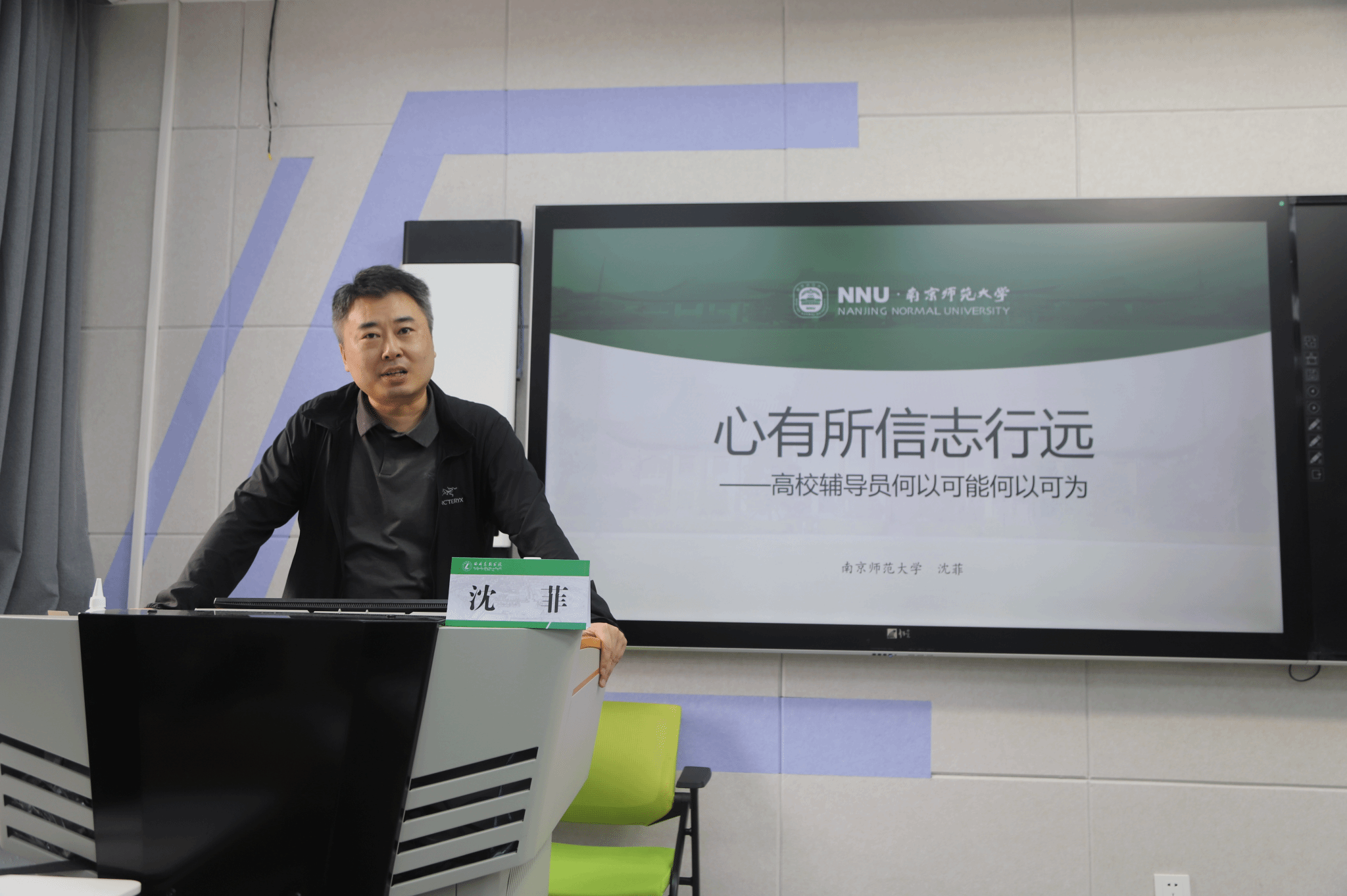 全国辅导员年度人物、南京师范大学党委研究生工作部部长沈菲老师做了《心有所信志行远—高校辅导员何以可能何以可为》专题讲座,以辅导员制度的起源引入主题,探讨辅导员思政教育、日常管理、自身成长及学生全面发展的思考,理论结合实际,鼓励老师们多去尝试、创新。