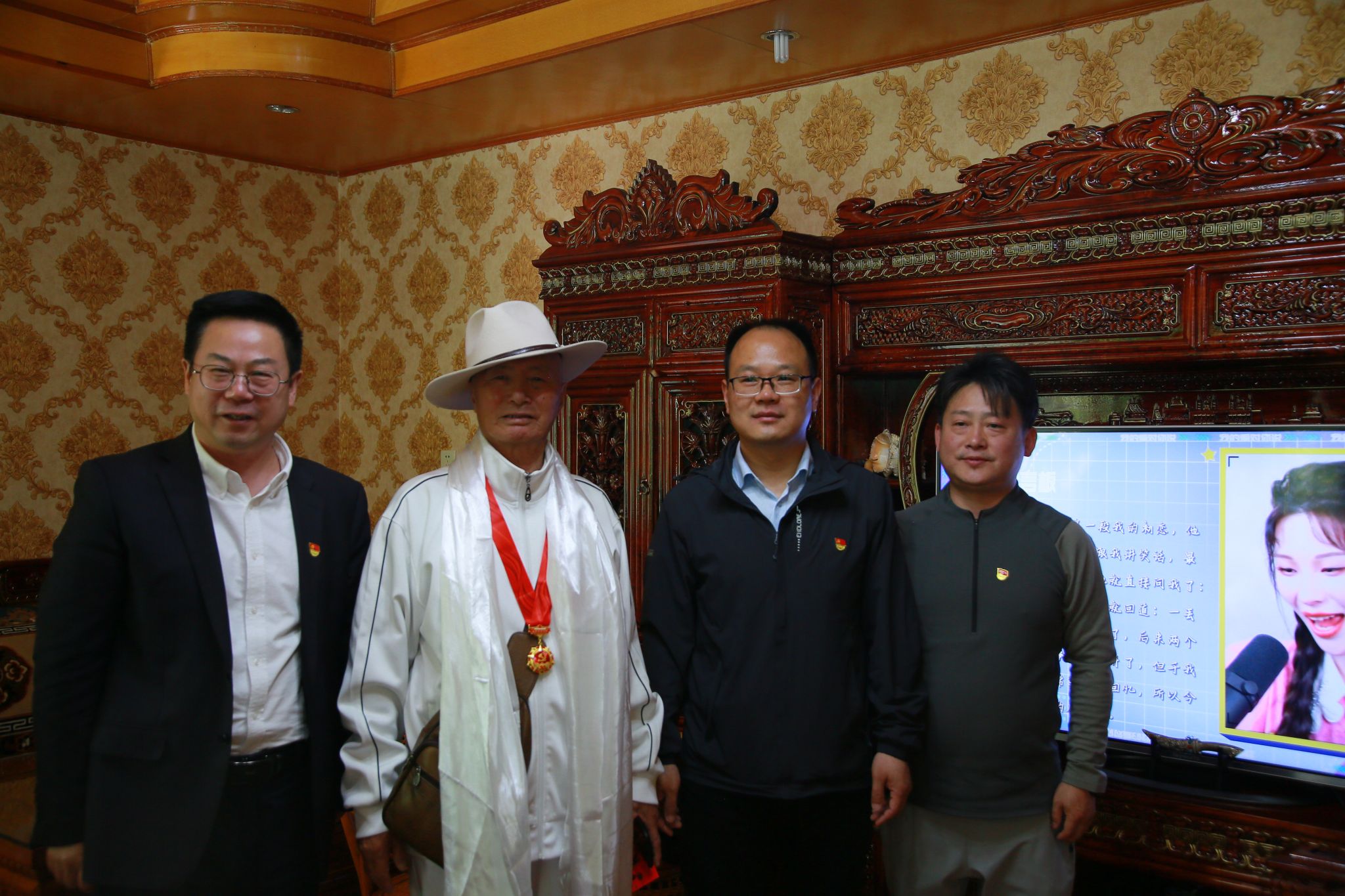 王程带队慰问了工作一线党员和老干部代表。在慰问工作一线党员时,了解他们工作生活情况和存在的困难,并勉励他们坚守岗位、无私奉献,践行初心使命,积极投身学校事业发展的火热实践中。在老党员家中,为老党员佩戴中共中央颁发的“光荣在党50年”纪念章,与老党员聊家常、话生活,关切询问身体情况和生活状况,并介绍了学校近期各方面发展情况,希望他们继续为学校高质量发展建言献策、贡献力量。