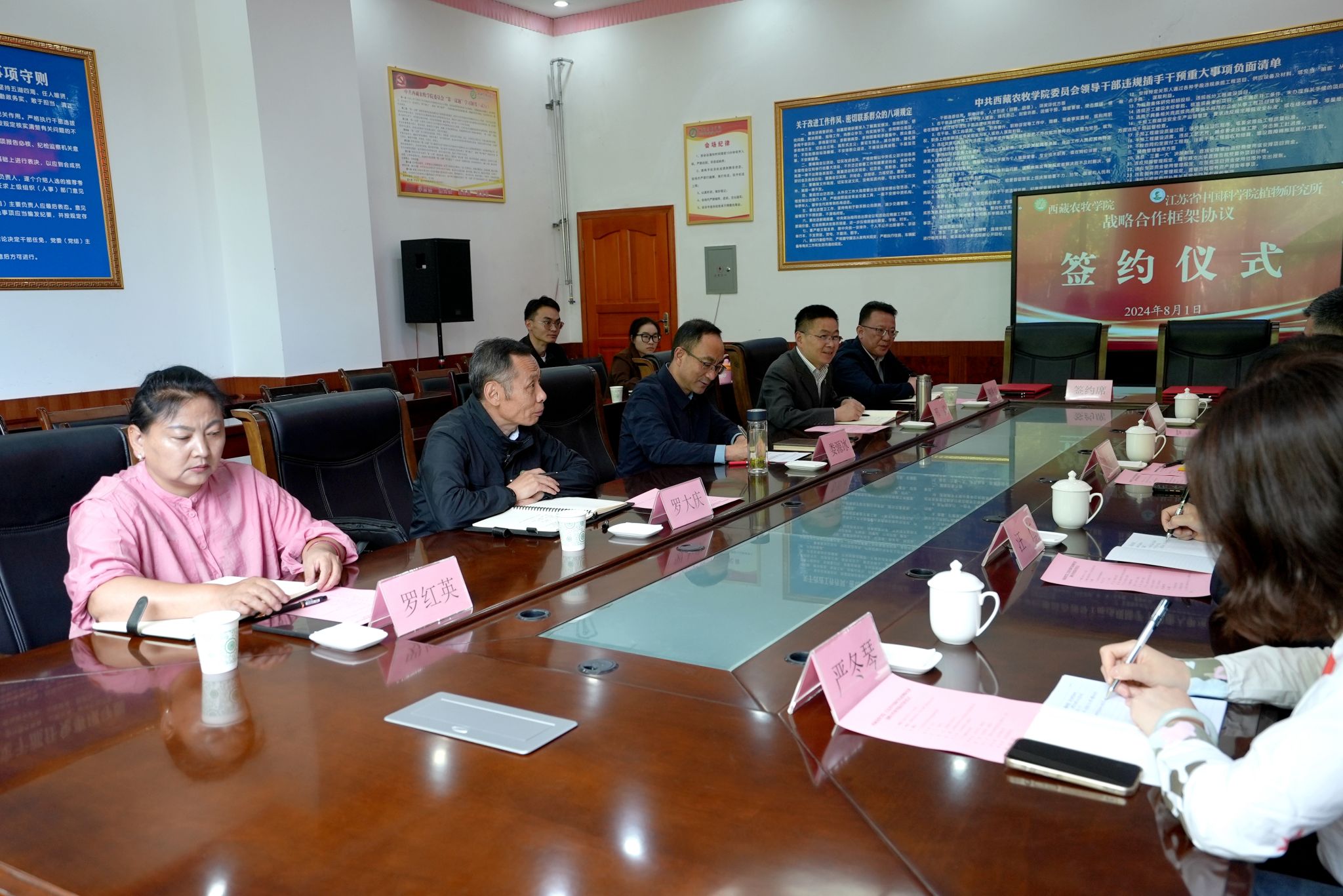 为进一步加强交流合作,8月1日上午,西藏农牧学院与江苏省中国科学院植物研究所深化合作座谈会暨签约仪式在西藏农牧学院举行。西藏农牧学院党委书记、副校长娄源冰,江苏省中国科学院植物研究所所长姚东瑞、副所长汪仁出席。西藏农牧学院党委委员、副校长邢震主持。