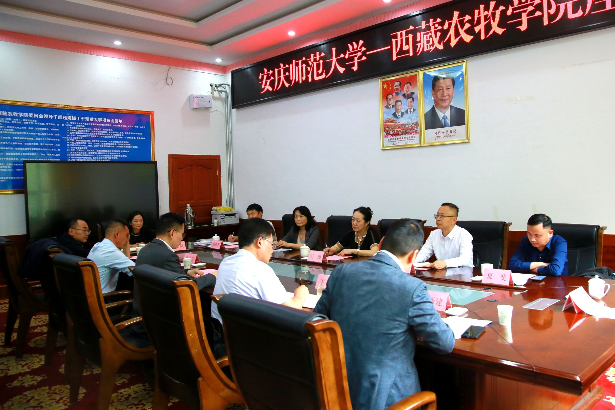 8月2日下午,西藏农牧学院党委委员、副校长邢震与来访的安庆师范大学党委常委、副校长吴琼、徐晓宁一行座谈交流。