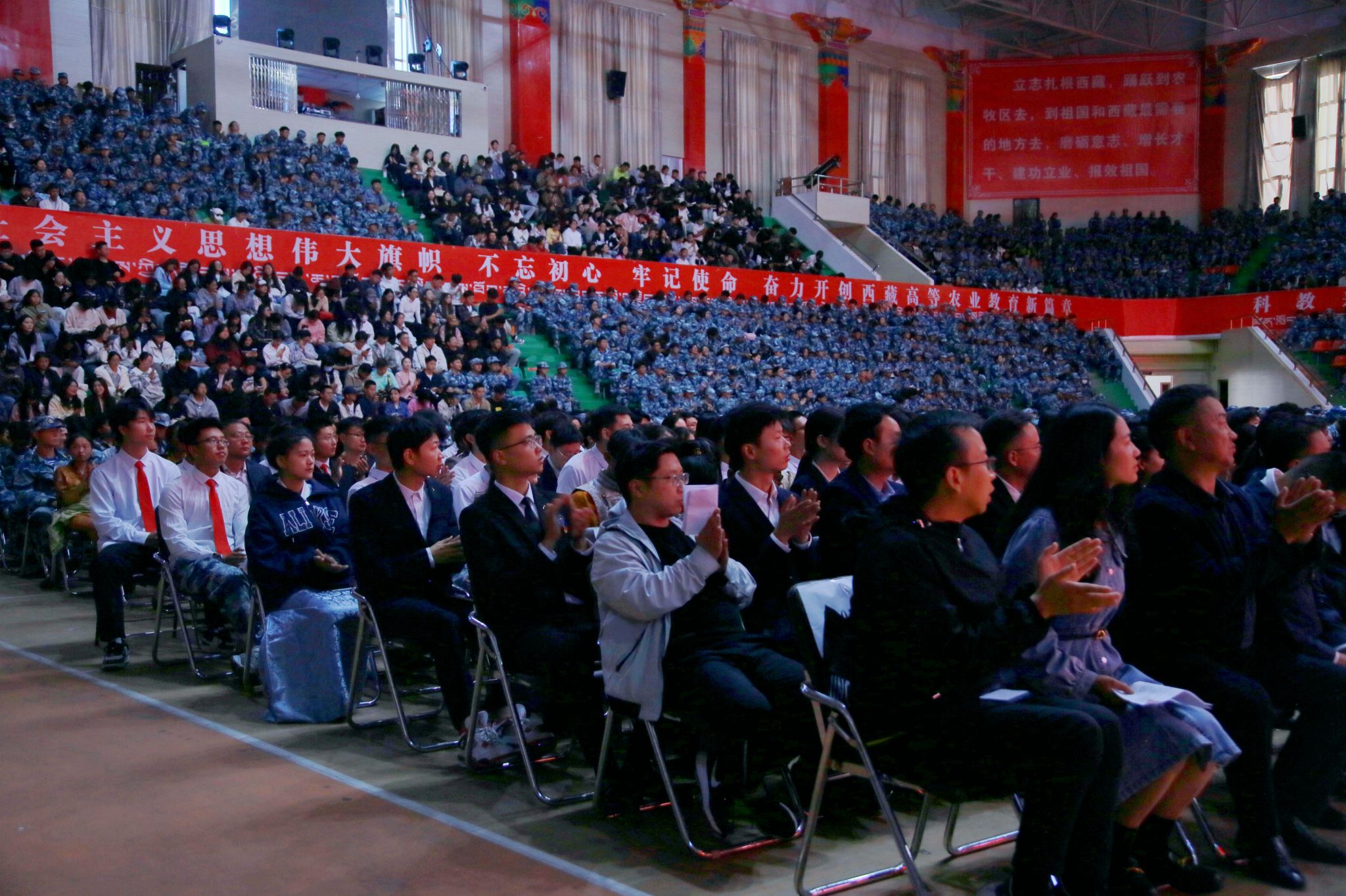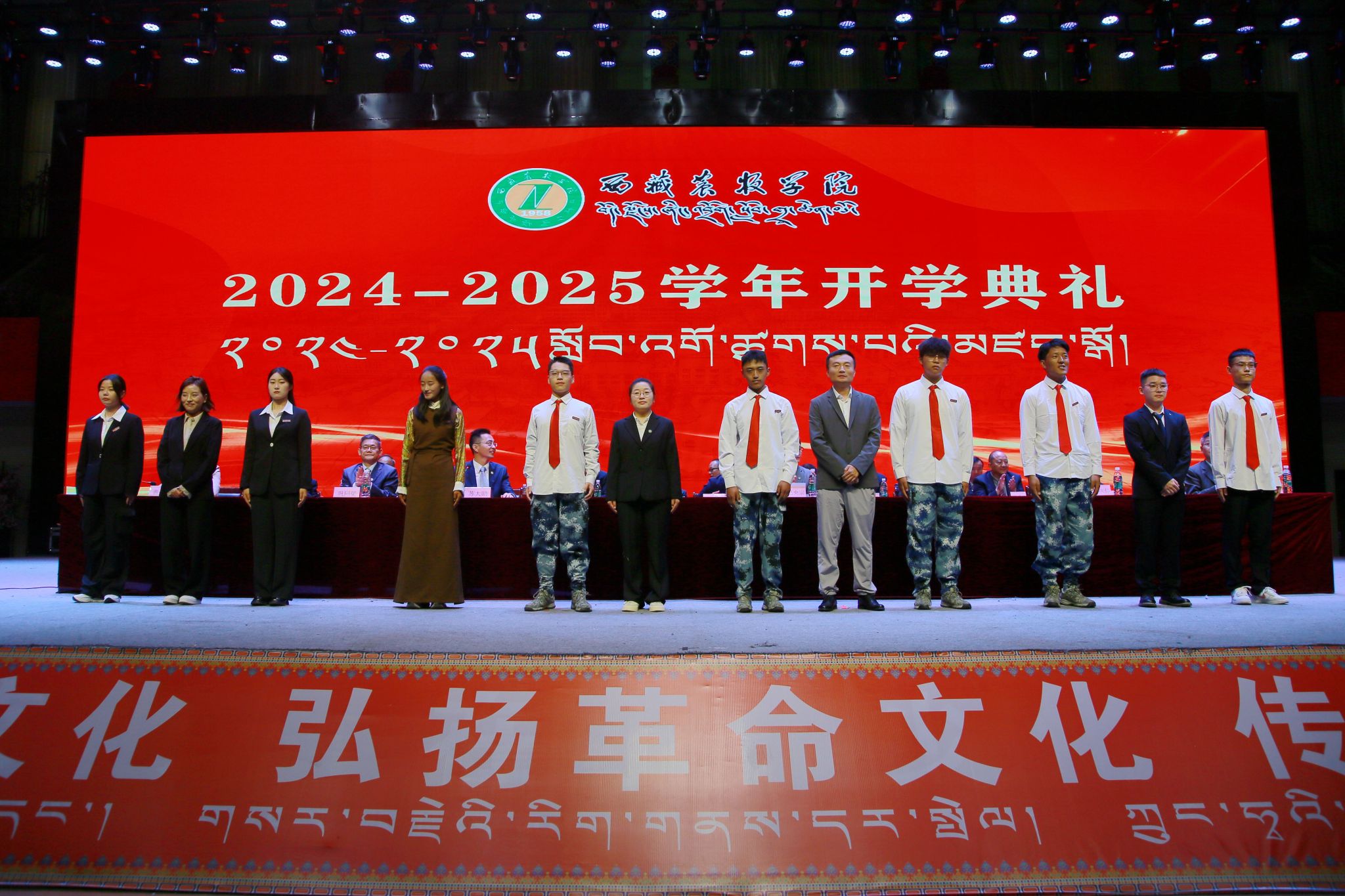 开学典礼由校党委副书记、副校长苏大鹏主持。学校领导王程、巩同梁、边巴次仁、曹仲华、邢震,各部门主要负责同志、师生代表,2500余名2024级新生参加活动。
