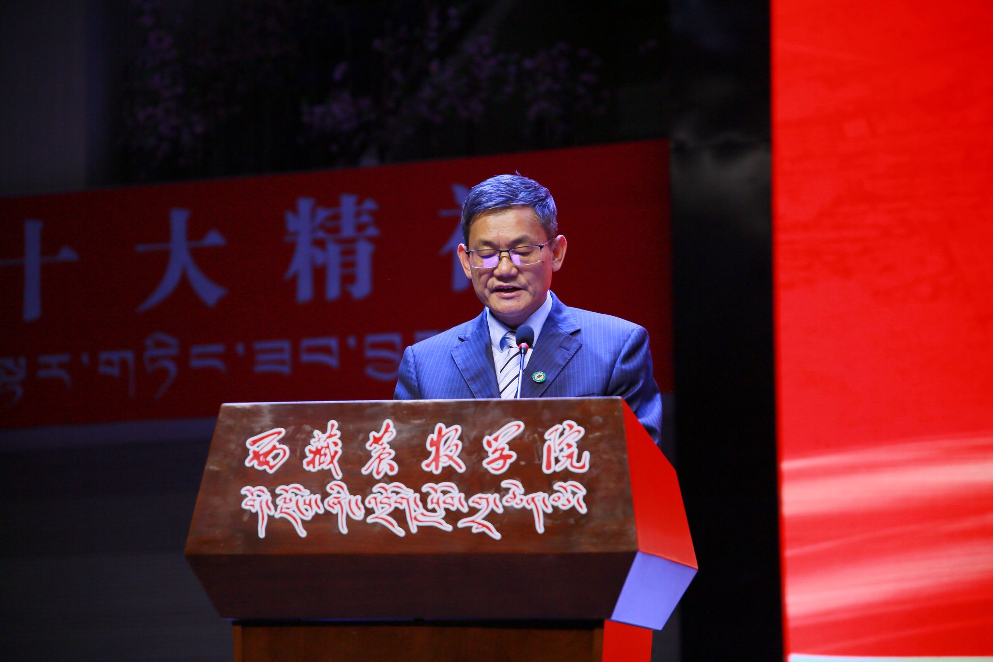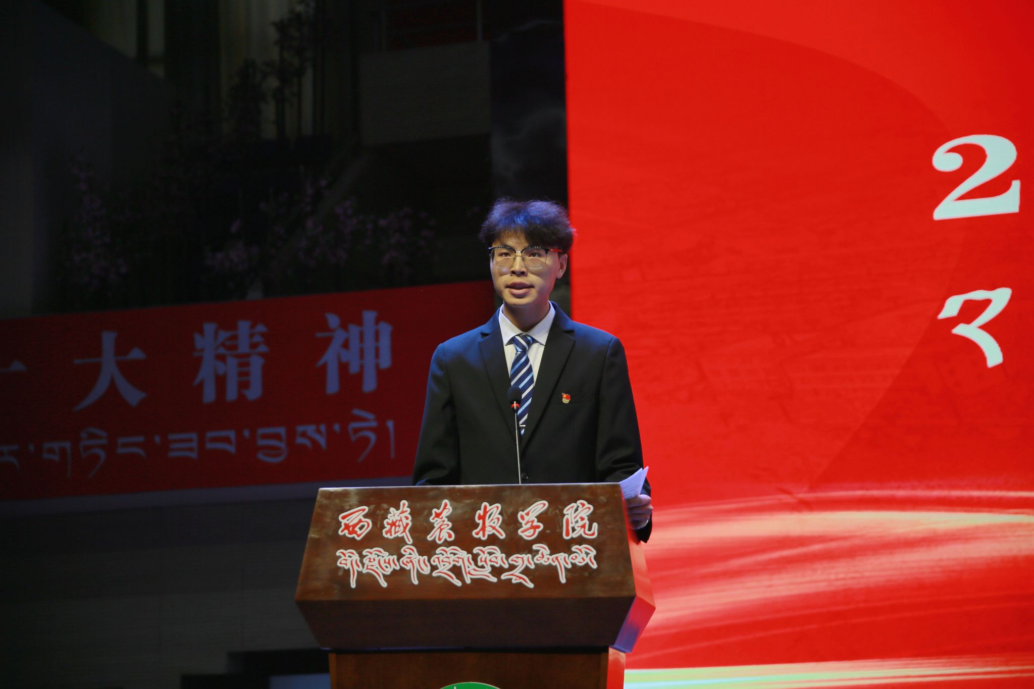 在校生代表动物科学学院薛松昂、本科生新生代表电气工程学院索朗吉拉、研究生新生代表水利土木工程学院张佳静、教师代表动物科学学院谭占坤先后发言。
