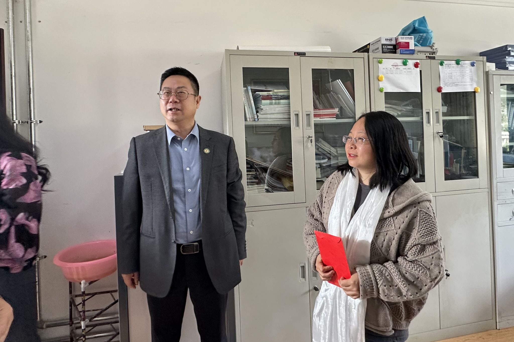 在走访慰问中,学校领导深入基层一线、办公场所、授课班级和专家家中,为教师代表献上洁白的哈达,送上节日慰问金。在与专家人才、一线教师职工交谈中,学校领导代表学校党委、行政感谢他们对学校发展做出的积极贡献,认真了解他们在教学科研和生活中的情况,勉励他们要大力弘扬教育家精神,不忘立德树人初心,牢记为党育人、为国育才使命,弘扬高尚师德,勇攀科学高峰,积极投身学校教育改革发展事业,为培养德智体美劳全面发展的社会主义建设者和接班人贡献力量。在与援藏干部交谈中,认真了解了他们的工作情况及生活中遇到的困难,听取他们对学校事业改革发展的建议和意见,勉励他们积极立足本职岗位,发扬优秀传统,砥砺奋斗情怀,做干事创业的表率,树立援藏干部人才的光辉形象,不辜负党和人民的殷殷重托。在与困难教师交谈中,详细了解他们的身体状况、家庭情况和日常生活,并鼓励他们保持乐观心态,积极面对,树立信心,战胜困难,勉励他们要一如既往地立足岗位做好本职工作,围绕学校中心工作,服务大局,勤于思考,勇于实践,助推学校高质量发展。