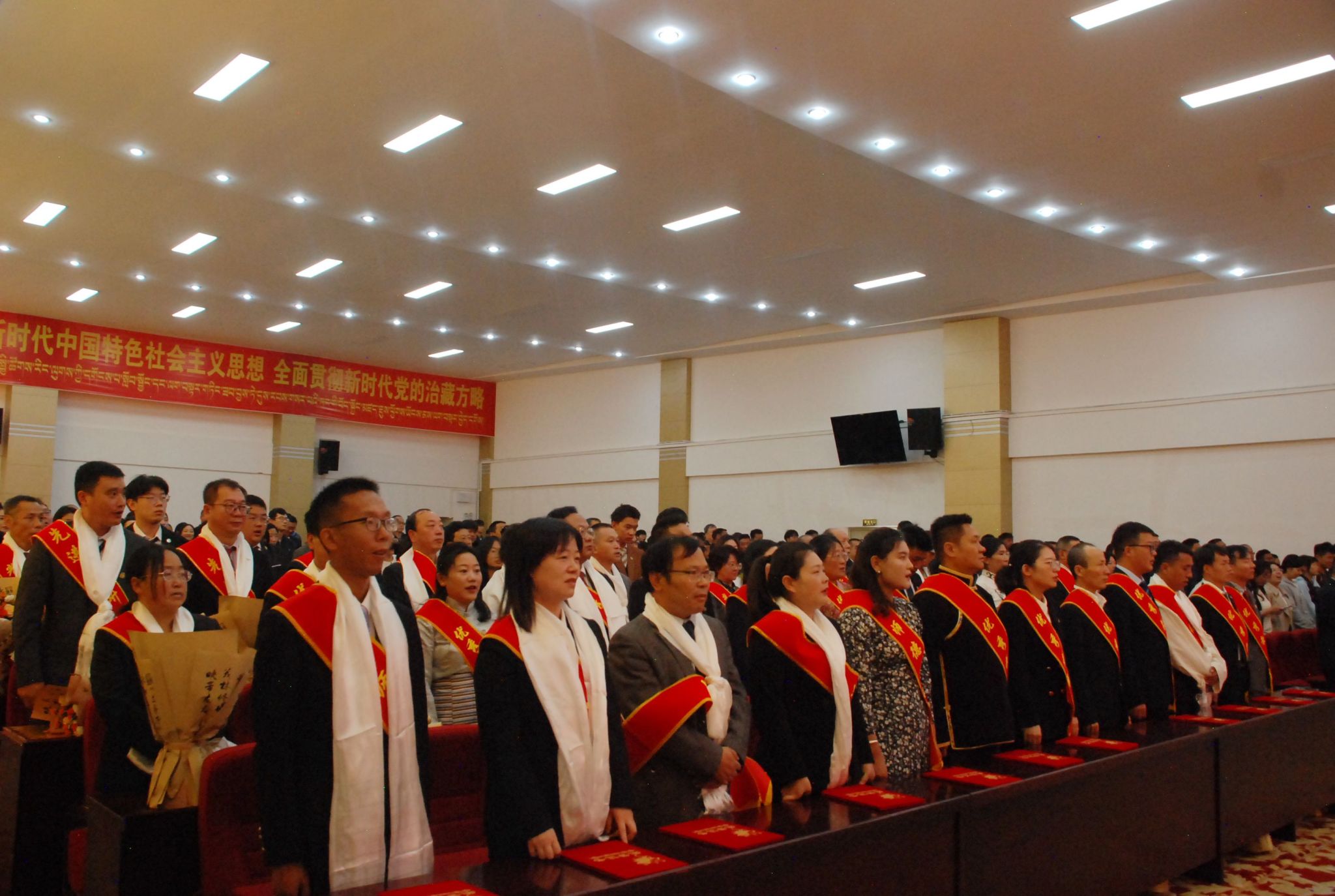 学校领导苏大鹏、王程、巩同梁、边巴次仁、曹仲华、邢震出席大会。学校全体县处级干部,各部门行政人员,各二级学院(部、所)教师、学生代表参加会议。
