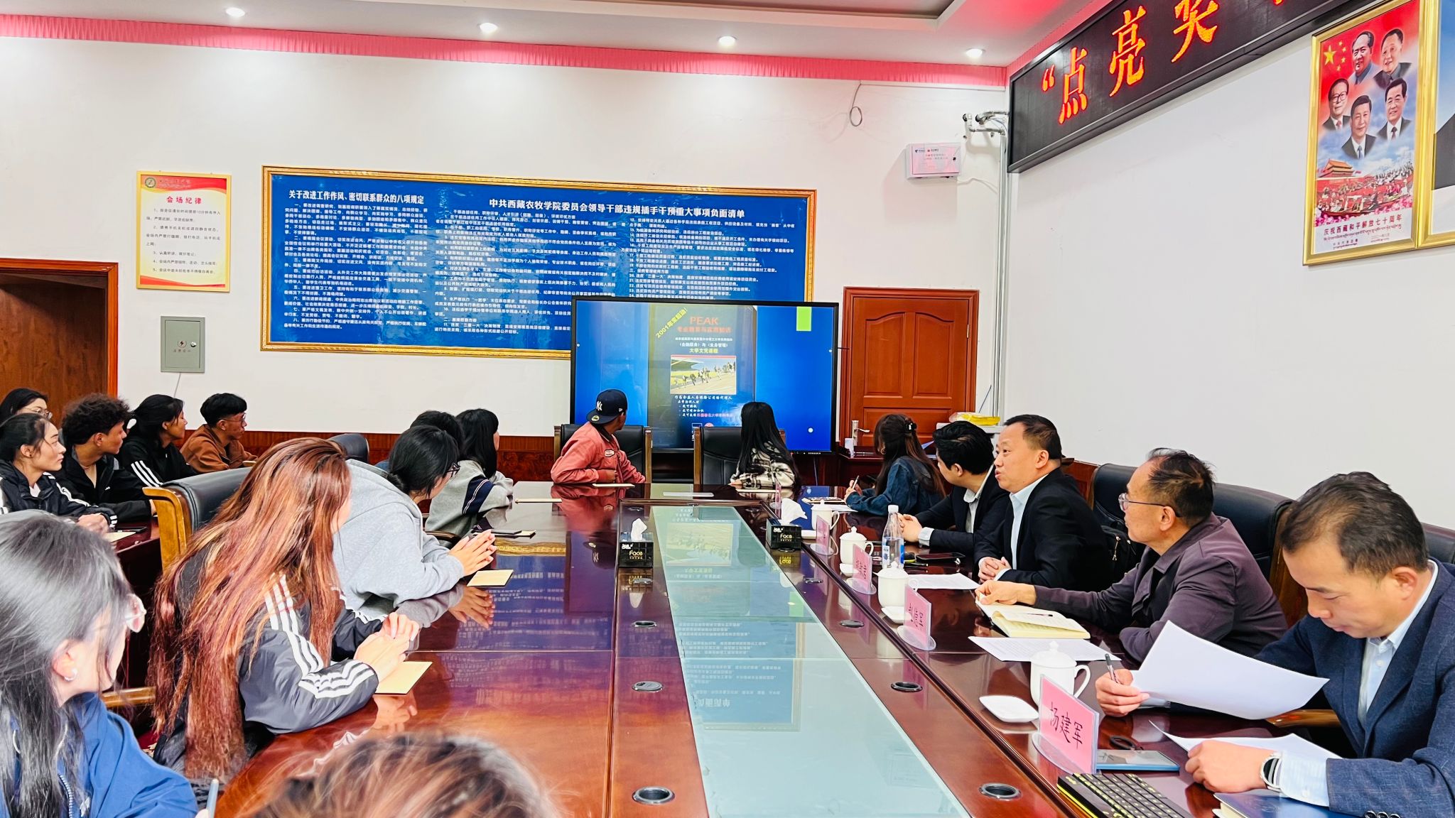 9月27日上午,西藏农牧学院在一号行政楼党政会议室举行了2024年“点亮奖学金”发放仪式,上海点亮实业有限公司总经理胡敏君、学生工作处处长赵德军以及获奖学生代表30余人出席了发放仪式。仪式由学生工作处副处长杨建军主持。