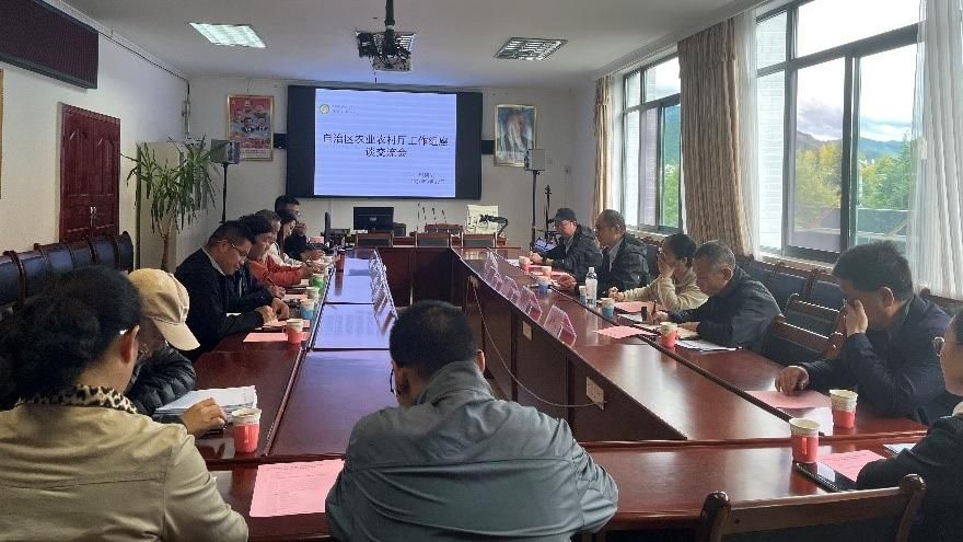 9月27日,自治区农业农村厅农业科技处处长胡剑武、中国农业科学院兰州兽医研究所研究员景志忠一行来我校调研,林芝市农业农村局党组成员、副局长熊玉梅陪同调研,西藏农牧学院党委委员、副院长邢震以及各二级单位相关领导参与座谈交流,会议由科研处李奇副处长主持。
