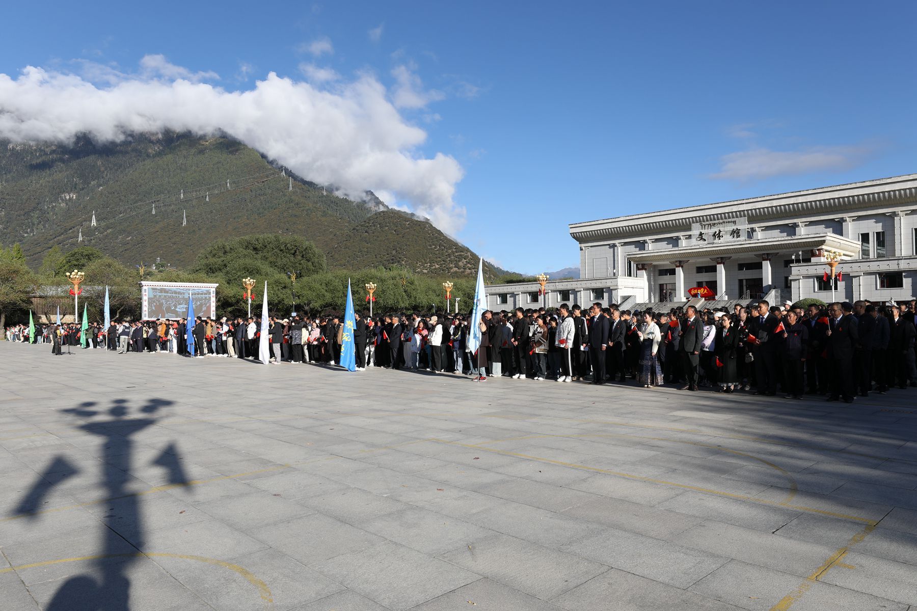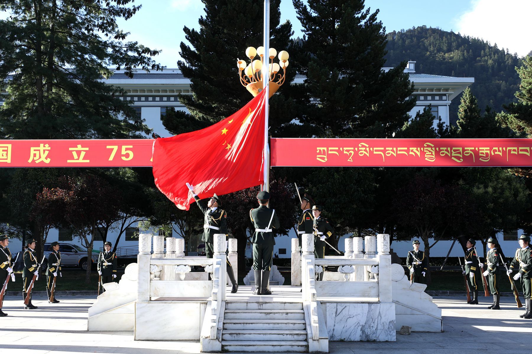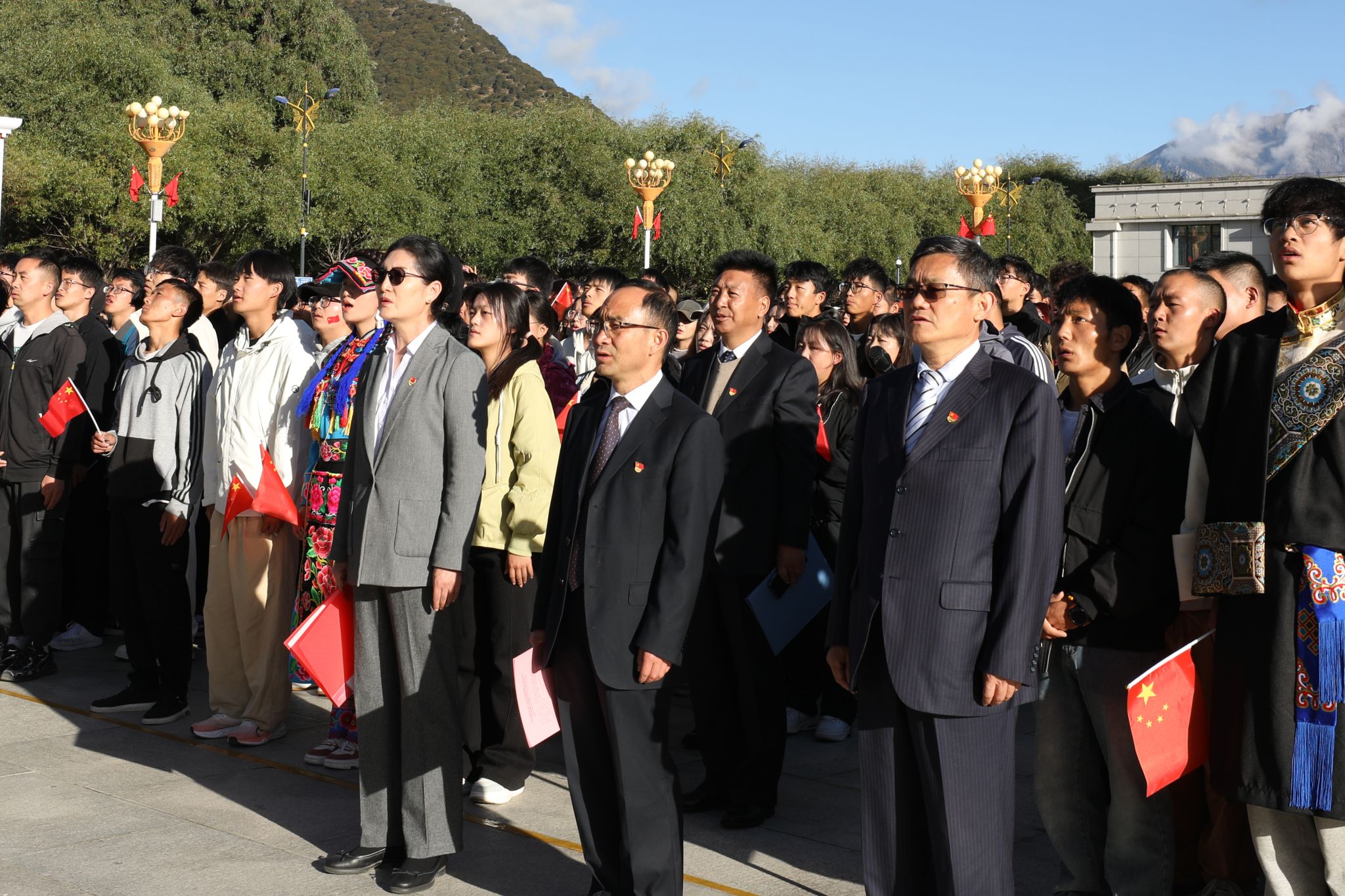 为热烈庆祝中华人民共和国成立75周年,致敬伟大的中国共产党,歌颂伟大的祖国母亲,引领全校师生进一步增强民族自豪感和历史使命感,10月1日,西藏农牧学院在文体馆广场隆重举行升国旗唱国歌仪式。
