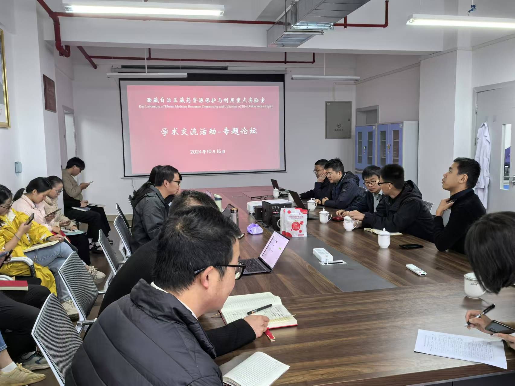 根据自治区重点实验室工作总体部署,结合2024年度西藏自治区藏药资源保护与利用重点实验室工作计划,为促进学术交流与合作,提升实验室研究能力,2024年10月15-18日,西藏自治区藏药资源保护与利用重点实验室学术交流活动在我校顺利召开。活动邀请了北京大学现代农业研究院研究员李博生、中国林科院热林所副研究员孟森、河南中医药大学副教授练从龙、山东丰沃集团高等植物研究院院长周扬颜等青年学者参加此次学术交流活动;参加活动的还有实验室全体成员及部分研究生;此次系列活动主要包括青年学者专题论坛、青年学者研讨会、实验室参观、基地及野外资源考察等环节。