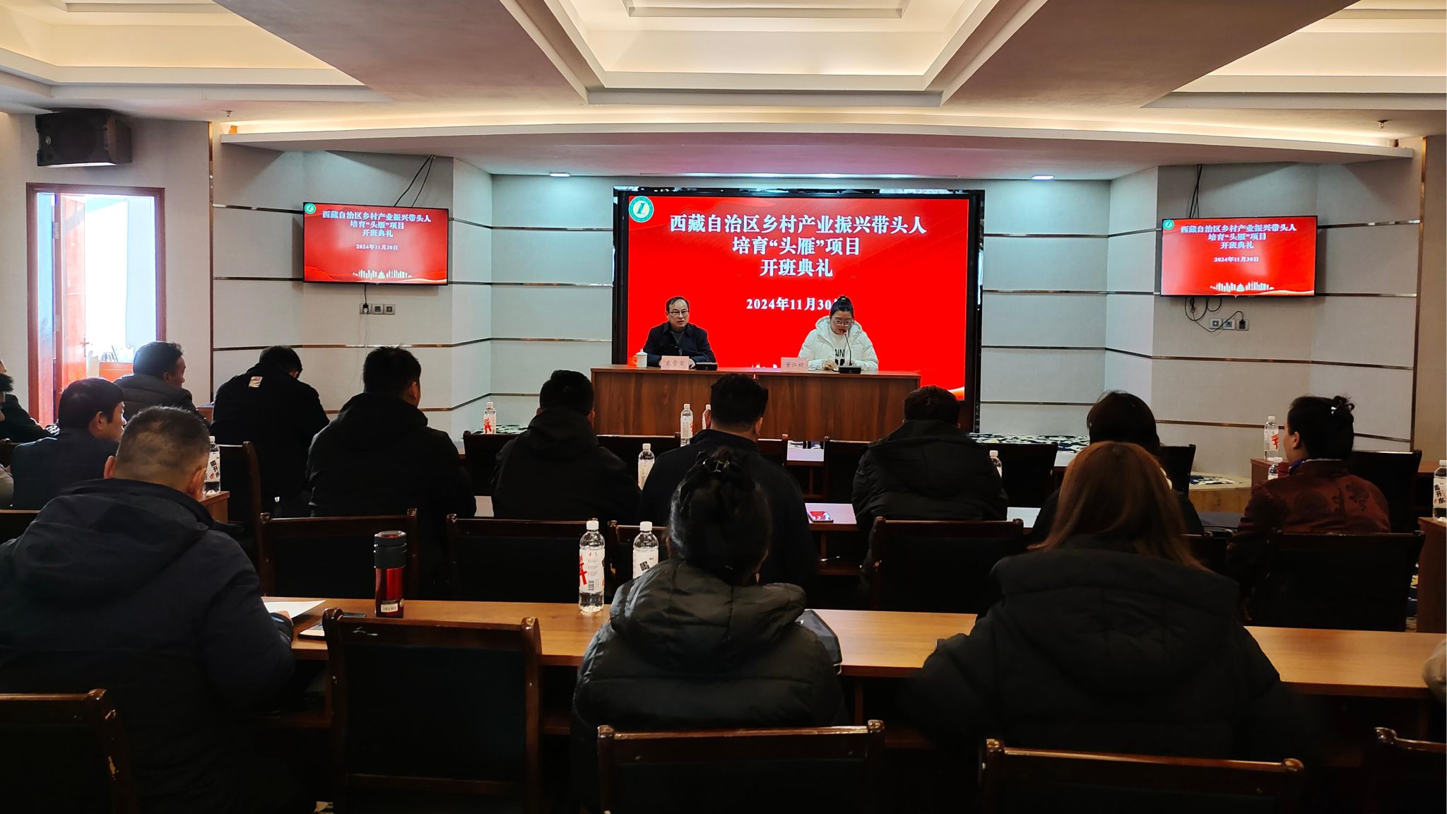 为深入贯彻落实习近平总书记关于“三农”工作重要论述、西藏工作重要指示和新时代党的治藏方略,聚焦推动乡村产业高质量发展、推进乡村振兴等重点工作,由自治区农业农村厅主办、西藏农牧学院承办的乡村产业振兴带头人培育“头雁”项目于2024年11月30日上午在林芝市正式开班,来自自治区五个地市的行业领头人参加此次培训。学校成人教育部主任袁贵荣出席开班式。