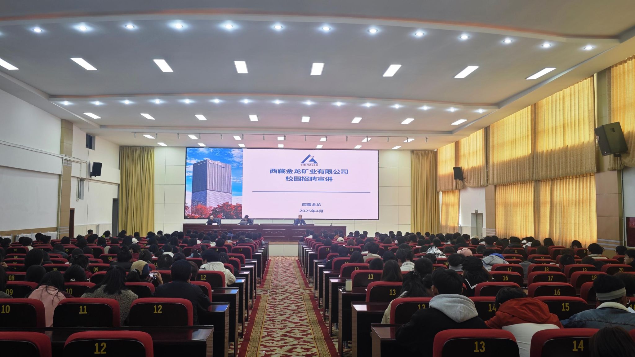 2025年4月1日,西藏金龙矿业有限公司招聘团队走进西藏农牧学院开展招聘宣讲会,为校企合作搭建桥梁。此次招聘宣讲会在西藏农牧学院行政楼一楼学术报告厅举行。西藏金龙矿业有限公司人力资源专班浦绍学、人力资源部经理师远焘以及招生就业处、各相关专业教学单位负责就业工作辅导员、相关专业毕业生参与。会前,学校党委副书记、副校长苏大鹏前往招聘现场与招聘单位负责人、应聘毕业生促膝交谈,了解此次招聘岗位、数量以及毕业生应聘准备等情况,要求招生就业处认真落实前期与西藏金龙矿业有限公司对接座谈、校企战略合作协议有关事项,做好服务保障、跟踪对接等工作,为持续强化校企合作打下坚实的基础。