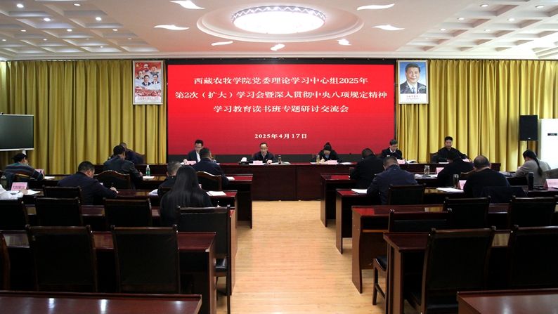 2025年4月17日,西藏农牧学院召开党委理论学习中心组学习会暨深入贯彻中央八项规定精神学习教育读书班专题研讨交流会。校党委书记、副校长娄源冰主持会议并总结交流。在校党委班子成员强巴央宗、苏大鹏、巩同梁、毛国斌、达娃次仁,各二级党组织负责同志参加会议。