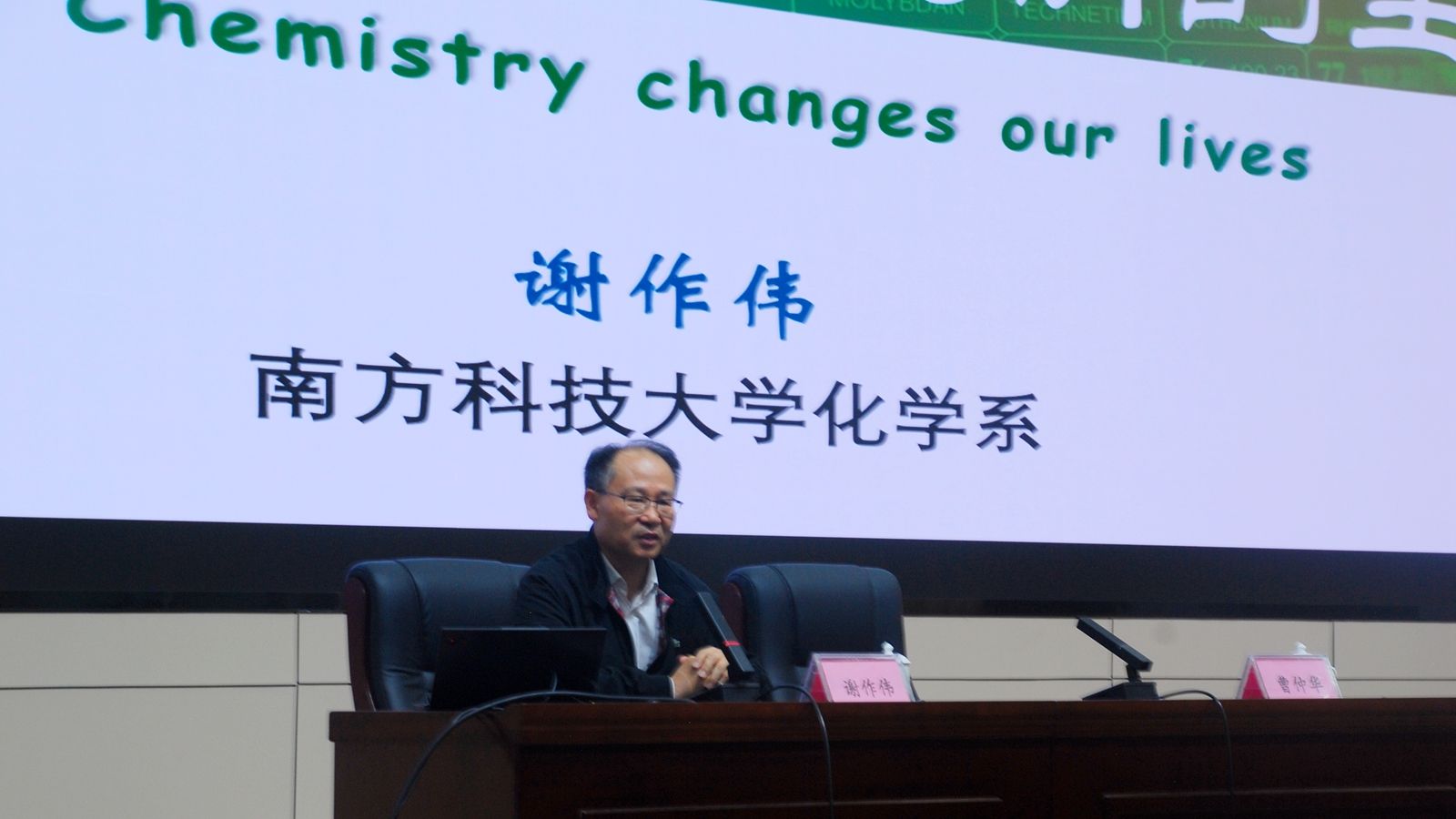 5月12日,金属有机化学家、中国科学院院士、香港科学院院士、南方科技大学讲席教授、香港中文大学卓敏化学讲座教授谢作伟应邀在学校一号行政楼报告厅作了题为“化学改变我们的生活”的科普讲座。此次活动由学校党委委员、副校长曹仲华主持,全校200余名师生参加。
