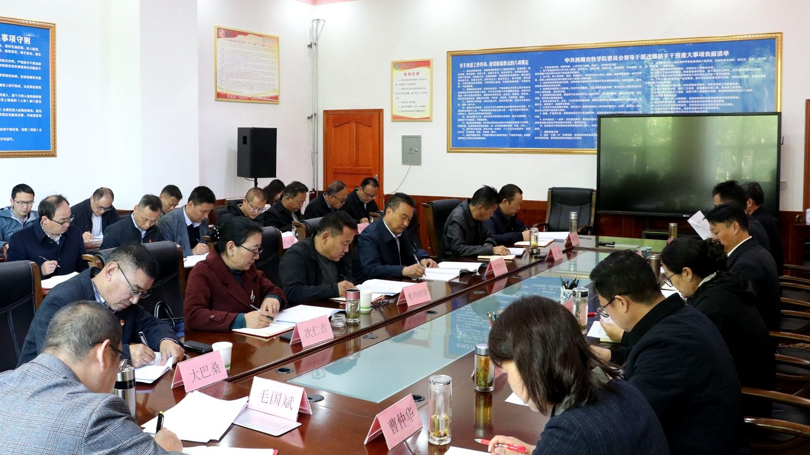 西藏农牧学院全体在家党委班子成员、各二级党组织有关负责同志参会。